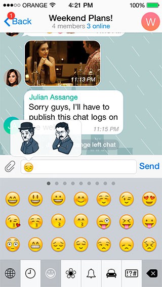 Сами наборы будут группироваться по эмоциям, поскольку основная задача стикеров Telegram — это выражение настроения пользователя, что функционально роднит их с обычными смайликами. При вводе любого смайла будет выводиться контекстное меню-подсказка со стикерами, соответствующими выбранной эмоции.