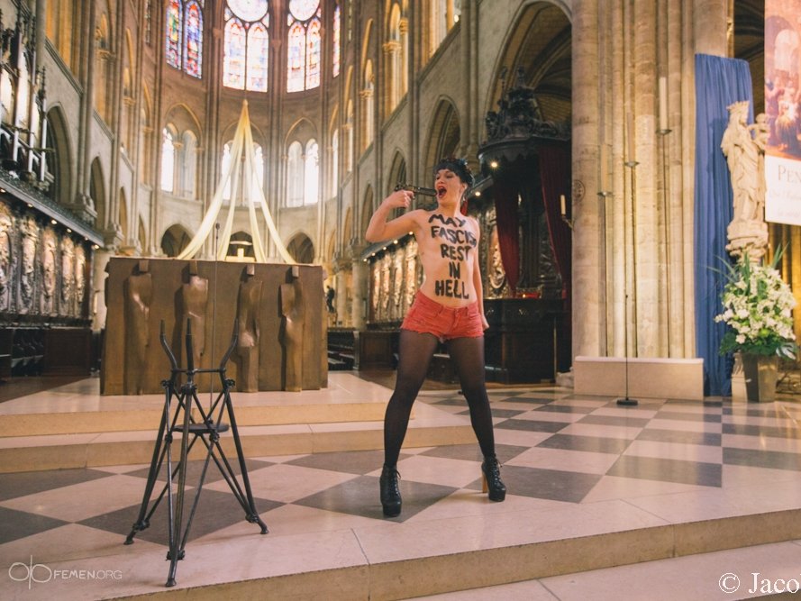 Это не первая подобная акция Femen на площади Святого Петра. 14 ноября несколько полуобнаженных девушек протестовали здесь в знак протеста против выступления Папы Римского Франциска в Европейском парламенте. А в декабре 2013 года Инна Шевченко оголила свою грудь, протестуя против неприятия католической церковью абортов. Кроме того, в феврале 2013 года активистки Femen обнажились внутри Собора Парижской Богоматери, ударяя в колокол возле алтаря и выкрикивая: «Больше нет папы!», «Больше нет гомофоба!», «Прощай, Бенедикт!»