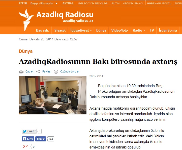 Ранее в Бакинском бюро радиостанции прошел обыск, некоторые сотрудники были допрошены.