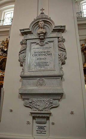 Колонна храма Святого Креста в Варшаве, в которой захоронено сердце Шопена Фредерик Шопен умер 17 октября 1849 года в два часа ночи в парижской квартире на Вандомской площади в возрасте 39 лет. Смерть засвидетельствовал врач Жан Крувелье, он же производил посмертное вскрытие. Композитор был похоронен на кладбище Пер-Лашез, а сердце, по его завещанию, было отправлено в Варшаву.