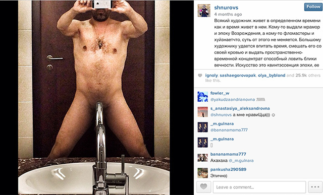 В 2014-м слово «селфи», еще год назад бывшее новинкой, стало таким же привычным, как, скажем, «тяпка». Причем иные младенцы, которые еще не знают, что такое тяпка, уже умеют делать селфи и выкладывать их в Инстаграм. Как написал один из главных виртуозов селфи в нашей стране Сергей Шнуров в комментарии к своей фотке: «Всякий художник живет в определенном времени как и время живет в нем. Кому-то выдали мрамор и эпоху Возрождения, а кому-то фломастеры и х*йзнаетчто, суть от этого не меняется. Большому художнику удается впитать время, смешать его со своей кровью и выдать пространственно-временной концентрат способный ловить блики вечности». Мы подобрали 11 портретов больших художников нашего времени, сделанных на айфоны и выложенных в их официальные инстаграмы, которые исчерпывающе характеризуют своих героев (некоторые из этих фото, правда, не селфи, но очень удачно их имитируют).