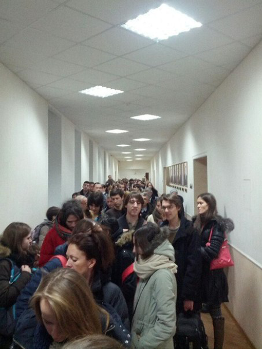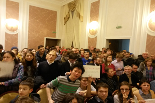«Бумаги» пришло более 500 человек. Людям не хватало места в зале, многие ждали в коридорах.