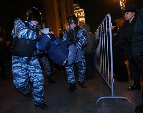 Разгон начался несколькими минутами раньше. Силовики встали цепью и оттеснили демонстрантов, некоторых из них задерживали и отправляли в автозаки. Число задержанных, по данным «ОВД Инфо», превышает 170 человек. Полицейские также через громкоговорители призывали собравшихся разойтись, на площади несколько раз подрались сторонники и противники Алексея Навального.