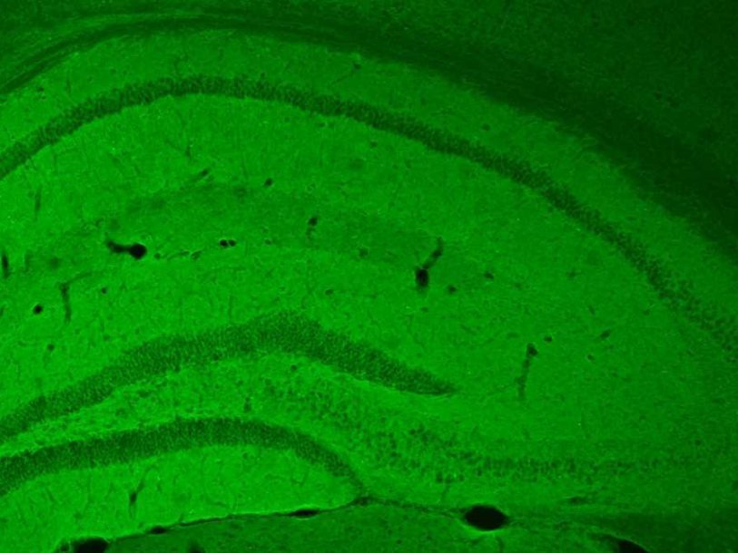 Удобный способ отрегулировать что-нибудь очень точно у одного вида – это воспользоваться системой, позаимствованной у другого вида. Это позволит избежать непредвиденных взаимодействий. Позаимствованный у дрозофилы и встроенный в мышиные клетки рецептор не будет активироваться мышиными гормонами и не станет запускать в клетках никакого другого процесса кроме синтеза цАМФ. цАМФ как вторичный посредник как раз довольно универсален и присутствует у самых разных видов. Именно так и поступили авторы работы. Они воспользовались октопамином и его рецептором, присутствующим у дрозофил. Для того, чтобы рецептор появился только в возбуждающих нейронах, кодирующий его ген был помещен под контроль промотора (не кодирующего белок регуляторного элемента, запускающего синтез соответствующей РНК), специфического для этого типа клеток. В качестве такого промотора был выбран промотор CaMKIIα (Ca2+/calmodulin-dependent protein kinase IIα). CaMKII – важный регуляторный белок, принимающий участие в процессах обучения и формирования памяти. Нарушения его активности связано, например, с болезнью Альцгеймера, а на клеточном уровне патологические процессы болезни Альцгеймера как раз и связаны с гиппокампом и возбуждающими нейронами.