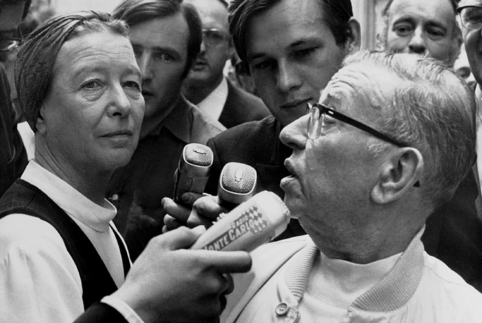 Мишель Фуко (слева) и писатель Жан Жене на антирасистской демонстрации после убийства алжирского рабочего Мохаммеда Диаба в полицейском участке в Версале, 16 декабря 1972 года. Фото: Michel Lipchitz / AP / ТАСС