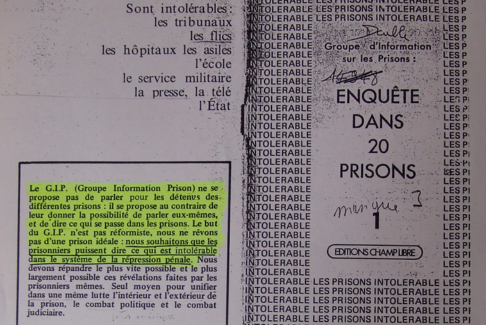 Министр юстиции Рене Плевен, в ведении которого находились тюрьмы, обвинил в подстрекательстве бунтов «некоторые подрывные элементы»; именно они, говорил чиновник, пытались «использовать заключенных (на которых и падут все последствия происходящего), чтобы спровоцировать в разных пенитенциарных учреждениях волнения, представляющие большую опасность». Министр имел в виду «Группу информации о тюрьмах» (ГИТ). Костяк ее действительно можно было назвать «подрывным элементом» — его составляли участники маоистского движения «Пролетарская левая», возникшего на волне студенческих протестов мая 1968-го и через два года объявленного вне закона. Но в поддержку радикалов из ГИТ выступали Жан-Поль Сартр, Симона де Бовуар и другие знаменитости. В деятельности группы принимали участие священники, преподаватели престижных парижских университетов и сами сотрудники тюрем, а о создателе организации биограф позже напишет: «Его элегантный бритый череп был эмблемой политического мужества — путеводной звездой сопротивления институциям власти». У истоков «Группы информации о тюрьмах» стоял мыслитель, историк, один из самых ярких представителей европейской интеллектуальной сцены второй половины XX века Мишель Фуко.