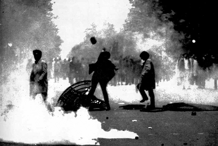 Мишель Фуко. Источник: chombinautas.org «Я стал свидетелем мощных студенческих выступлений, на несколько недель опередивших майские события во Франции. Шел март 1968 года. Волнения длились целый год: забастовки, отмена занятий, аресты. В марте во время всеобщей забастовки студентов полицейские ворвались в университет и стали избивать студентов дубинками. Многие из них были тяжело ранены. Потом начались аресты, процессы. Кто-то получил восемь лет тюрьмы, кто-то — десять, кто-то — четырнадцать. Я составил себе достаточно ясное и точное представление о том, каковы были ставки в борьбе, охватившей многие университеты мира. […] Эти мальчики и девочки, которые шли на страшный риск, изготовляя и распространяя листовки, призывая к забастовке… (они рисковали свободой!) произвели на меня сильное впечатление. Для меня это был реальный политический опыт…Там, в Тунисе, обстоятельства вынудили меня оказывать студентам конкретную помощь», — вспоминал Фуко. Его отношение к марксизму меняется. Он замечает, что «тунисские студенты не были серьезно подготовлены в плане марксизма, да к этому и не стремились». Для молодежи теория Маркса не была догмой, но вселяла «желание, способность и возможность принести абсолютную жертву — без тени тщеславия, стремления к власти или выгоде». Марксизм дал протесту энергию, вызвал «жестокость, напряженность, поразительнейшую страсть», подвигнул на «страшный риск публиковать манифест, распространять его, призывать к забастовке: ставить под угрозу свою личную свободу. Это поразило меня невероятно». Фуко перечитал «Историю русской революции» Троцкого и, приехав в Париж, полушутя признался своему любовнику Даниэлю Деферу в «троцкизме». «Наслаждался моментом и с энтузиазмом кидал кирпичи» В Тунисе он следил за многотысячными студенческими протестами в Париже 1968-го, читая Le Monde и слушая радио. «Они не делают революцию, — говорил Фуко, — они и есть революция». К его возвращению во Францию протест исчерпал себя. Президент де Голль согласился распустить парламент и провести досрочные выборы, пригрозив, что в ответ на новые беспорядки мобилизует армию. ФКП призвала прекратить забастовку, правительство одну за другой запрещало левые молодежные группировки. На перевыборах в июне голлисты победили с большим отрывом, вдвое сократив представительство коммунистов и социалистов. Министерство образования запустило серию реформ, направленных, в том числе, на ослабление протеста. Центральное решение — открытие нового вуза в Венсеннском лесу. Власти преподнесли его как ответ на требования демонстрантов — Венсенн должен стать экспериментальным центром междисциплинарных исследований с автономным управлением при участии учащихся. Но попутно решалась и другая задача: выманить радикально настроенных студентов из Сорбонны — очага революционных настроений в центре Парижа — в предместья, тем самым изолировав движение. В комиссию, которая формировала преподавательский состав нового вуза, вошли интеллектуалы первой величины — Жорж Кангийем, Ролан Барт и Жак Деррида. Отделение философии возглавил Фуко, позвавший к себе ветерана майских протестов Андре Глюксмана, который называл Пятую республику «фашистским государством», маоиста Алена Бадью и еще нескольких молодых леваков. Среди студентов Венсенна тоже оказалось немало ко