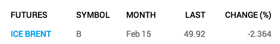 Цена на нефть марки Brent на торгах на IntercontinentalExchange 7 января опустилась ниже 50 долларов за баррель. На 11:30 мск фьючерсы стоили $49,92 за баррель.