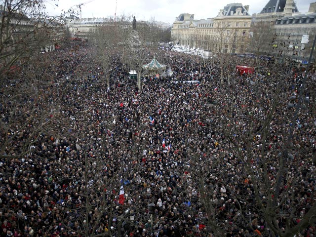 В Париже в воскресенье прошел Респуликанский марш, или марш единства - молчаливая акция в память о жертвах терактов, которые привели к гибели 17 человек. AFP со ссылкой на организаторов сообщает, что в центр столицы Франции пришли 1,5 млн человек. Накануне в манифестациях по всей стране приняли участие около 700 тысяч человек. Парижский марш сопровождали усиленные меры безопасности: на нем присутствовали до 50 глав иностранных государств, включая канцлера Германии Ангелу Меркель и премьера Британии Дэвида Кэмерона. Россию представлял глава МИД Сергей Лавров, США - генпрокурор Эрик Холдер.