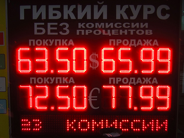 Утром средневзвешенный курс доллара США к российскому рублю со сроком расчетов "завтра" на торгах Московской биржи, на основе которого происходит курсообразование доллара на следующий день, по состоянию на 11:30 по Москве взлетел сразу на 2,11 рубля - до 64,8425 рубля.