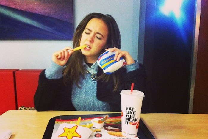 журналист: — Все началось небанально: меня не пустили в клуб на Думской. Мне было 17. Мы отмечали день рождения однокурсницы, и нас было семеро. Когда стало ясно, что вечер безнадежно испорчен, он пришел на помощь. Сочный, с отменной котлеткой между двух свежих булочек, с ниспадающими листьями салата — «двойной Феймос Стар». Четыре часа до открытия метро мы провели в «карлане» на Сенной. Хрустящая картошечка, терпкий аромат фастфуда, безлимитные напитки «в баре справа от кассы» — настоящий день рождения пятиклассника. Но мы же были серьезными людьми, хотелось большего! Взяли по три бургера. Это была моя первая встреча и с барами Думской, и с ресторанами Carl’s Junior. И во вторые я хожу значительно чаще.