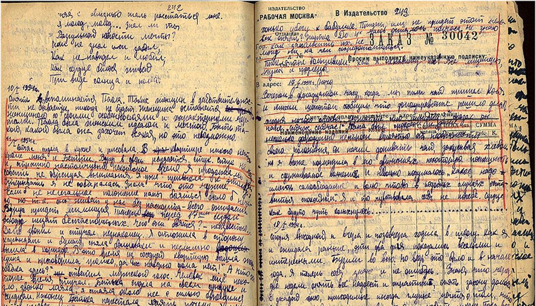 […] Вся Москва в морозном инее и тумане. Ходил по метро, присматривался, как люди одеты — портфели на кожаных ремнях через плечо; женщина в ватных штанах и куртке «хаки» повязана белым платком — и с перманентом; другая — в резиновых сапогах, третья — в меховых. В простых чулках и в туфлях уже кажется чудовищно соблазнительной, наверное. Видел красноармейца в матерчатых, белых, стеганых сапогах — наверное, такие заменяют валенки…