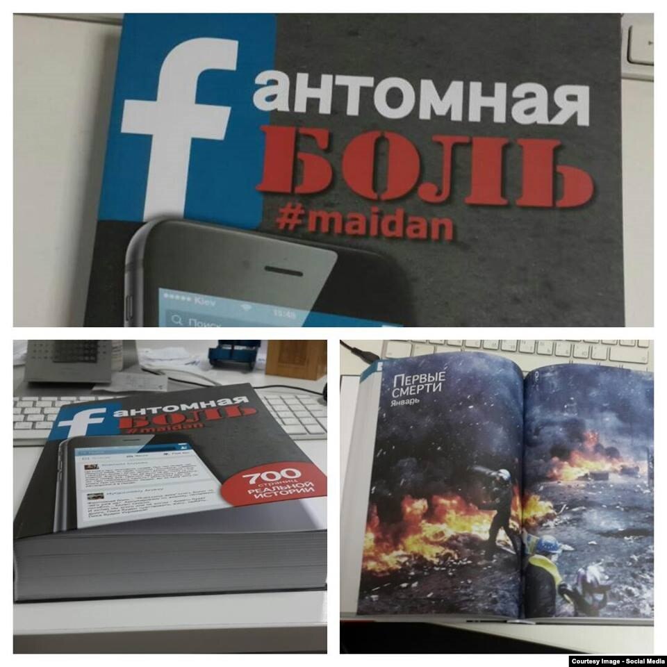 Книга "Fантомная боль #Майдан"составлена из сотен сообщений, оставленных в "Фейсбуке" участниками Евромайдана и им сочувствующими. В ней события трехмесячного протеста на главной площади Киева описаны не посредством хроники, а эмоций, переживаний и размышлений над происходившим год назад. Вот, например, отрывок из поста киевского художника Бориса Егиазаряна, который он написал, узнав о гибели Сергея Нигояна: