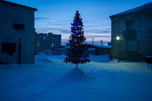 (на фото: главная новогодняя ёлочка в центре посёлка Териберка Мурманской области, где снимался "Левиафан")