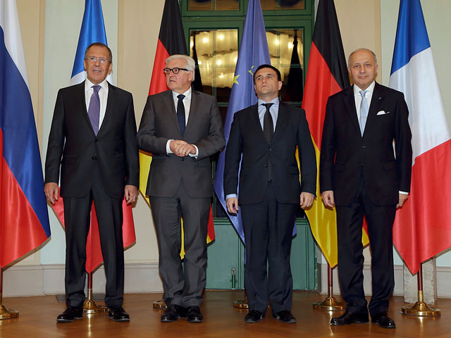 Как сообщал корреспондент "Интерфакса" из Берлина, встреча глав МИДов четрыех стран проходит за закрытыми дверями. Перед началом встречи перед журналистами выступил глава внешнеполитического ведомства Германии Франк-Вальтер Штайнмайер. Во время беседы он обратил внимание на обострение ситуации в зоне конфликта на Донбассе.