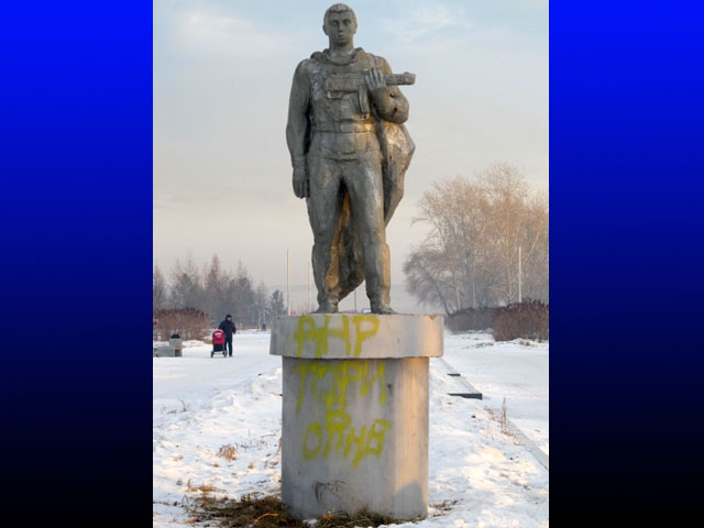 А в конце декабря 2014 года в Новосибирске полиция задержала трех человек по подозрению в раскраске в цвета украинского флага памятника Ленину и военной техники в Сквере памяти на Монументе славы - макетов реактивного миномета БМ-13 "Катюша" и танка Т-34.