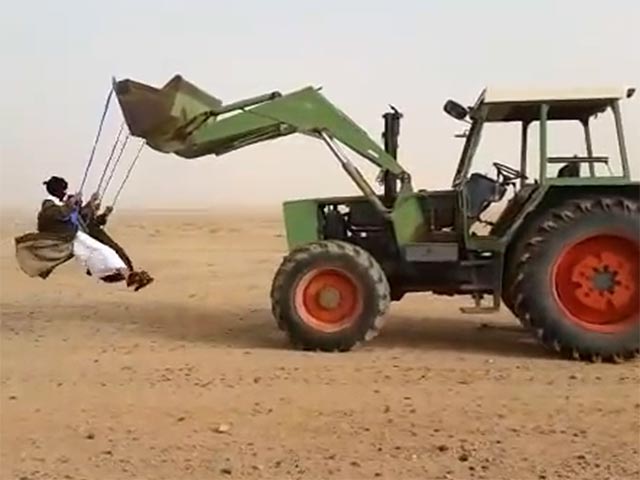 Саудовцы на качелях, прицепленных к неуправляемому погрузчику, стали интернет-феноменом (ВИДЕО)