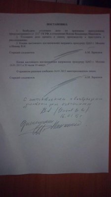 15 января я просто приехал на Манежную площадь — посмотреть, кто придет. Я там появился в пол-восьмого. Прошел буквально несколько метров, тут ко мне подходит офицер, которого я в лицо знаю, и он меня знает, потому что он все время на Манежной площади находится. Он сказал: «Вот этого», — и все, меня повели в автозак. Потом была ночь в ОВД, спать было неудобно, хотя и на матрасе, я практически не спал. Потом был суд, где мне присудили штраф в 150 и 20 тысяч. А после этого началось просто издевательство. Мне ничего не вернули — ни шнурков, ни подтяжек, ни телефона. Начали меня возить, в ОВД тянули время, мурыжили меня до самого позднего вечера. Я звонил все время по «02», но никакого эффекта не было, там дежурный от меня уже бегал, потому что надоело: ему работать надо, а я звоню. Потом меня насильно вывели на улицу, посадили в машину и отвезли в прокуратуру.