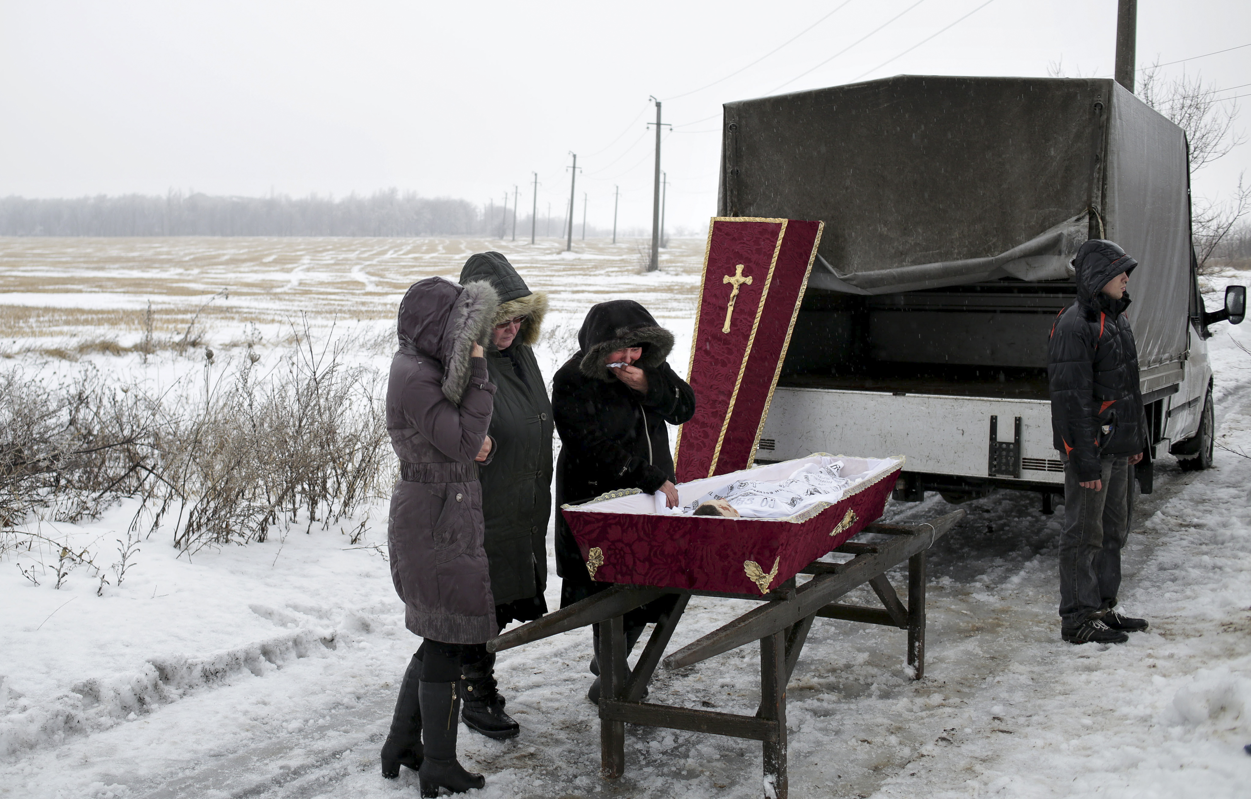 Бои на востоке Украины приводят к многочисленным жертвам среди мирного населения. На снимке: похороны в Дебальцево