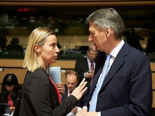 Федерика Могерини и министр иностранных дел Великобритании Филип Хэммонд Фото: European External Action Service В понедельник 19 января состоялась встреча министров иностранных дел ЕС, на которой обсуждалось предложение Фредерики Могерини, верховного представителя Евросоюза по иностранным делам и политике безопасности, пересмотреть некоторые аспекты взаимодействия с Россией. Могерини заняла эту должность в ноябре 2014 г., и этому назначению предшествовала большая медийная дискуссия, в которой много говорили о ее неопытности во внешнеполитической деятельности и выражали опасения, что по причине этой неопытности она будет придерживаться в отношении России слишком мягкого курса.
