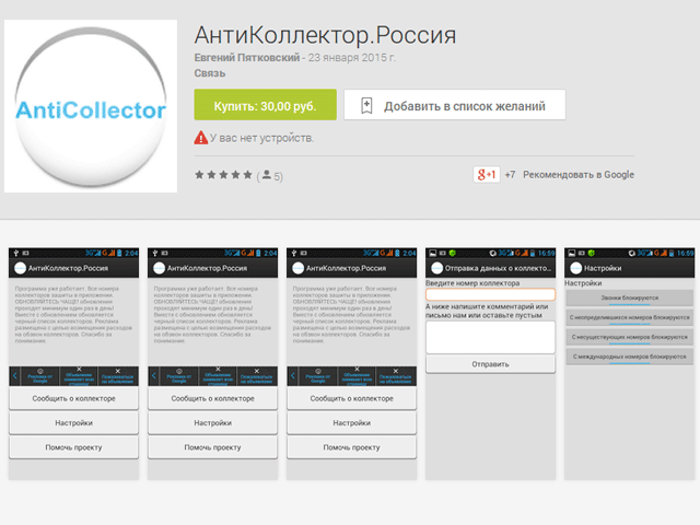 Как рассказал новосибирскому изданию НГС.НОВОСТИ создатель приложения "Антиколлектор" Евгений Пятковский, бесплатные версии для России, Казахстана и Украины исчезли из магазина Google play ночью в пятницу. Программист получил уведомление от Google, из которого следует, что он нарушил правила взимания платы, установленные компанией.