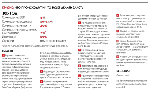 Некоторые эксперты, впрочем, приводят свои расчеты: совокупные валютные резервы ЦБ плюс российских компаний — $520 млрд, долги — $600 млрд, но истребовать могут лишь $470 млрд. Получается, если правительство не будет разбрасываться деньгами на помощь госкорпорациям вроде «Роснефти», то может этот год и пройдем. Вот и глава НОВАТЭКа Леонид Михельсон (его компания находится под санкциями США) излучал оптимизм: НОВАТЭК инвестиционную программу на 2015 год сокращать не собирается, сказал он корреспонденту NT. Спокоен и глава «Северстали» Алексей Мордашов. Председатель совета директоров НЛМК Владимир Лисин хотя и сказал, что у него только хорошие новости, но потом сам себя скорректировал: «Мы пока потеряли немного — 200–300 млн из того, что не заплатили и уже не заплатят партнеры, 60 % того, что раньше продавали в России теперь переориентировали за рубеж — а иначе, как деньги зарабатывать?» Абсолютное большинство собеседников говорили исключительно анонимно — перспектива полномасштабного банковского кризиса в России настолько страшна, что хочется ее молчанием заговорить. Что касается отношения мировой бизнес-элиты (на Давос–2015 приехали 1500 бизнесменов), не говоря уже о политиках, то их представление о будущем России для NT суммировал один из российских собеседников, который провел на форуме с десяток встреч с представителями мирового бизнеса: