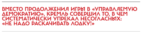 Возможно, так оно и есть, но это уже не имеет значения. Потому что вместо продолжения игры в «управляемую демократию», Кремль совершил то, в чем систематически упрекал несогласных: «Не надо раскачивать лодку!» Путин неожиданно для всех резко присвоил себе «повестку дня» оппозиции и не просто «качнул лодку», а взял и резко накренил весь «Титаник» на один борт.