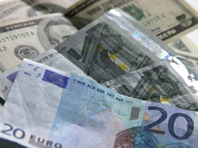 Курс евро на Московской бирже вырос почти на два рубля, доллара - на полтора