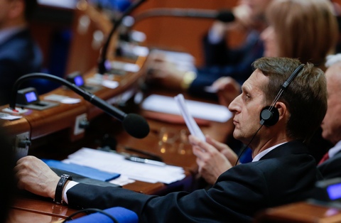 Фото: Франция. Страсбург. 26 января. Спикер Госдумы РФ Сергей Нарышкин на пленарном заседании Парламентской ассамблеи Совета Европы (ПАСЕ). Анна Исакова/пресс-служба Госдумы РФ/ТАСС
