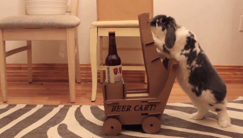 Пользователь YouTube Wallace TheMadKing (канал назван в честь Уоллеса — кролика, принадлежащего девушке автора) опубликовал ролик, показывающий умение домашнего животного привозить пиво. Для Уоллеса построили специальную тележку, которую он толкает добровольно — благодаря лакомству, закрепленному в удачном месте.