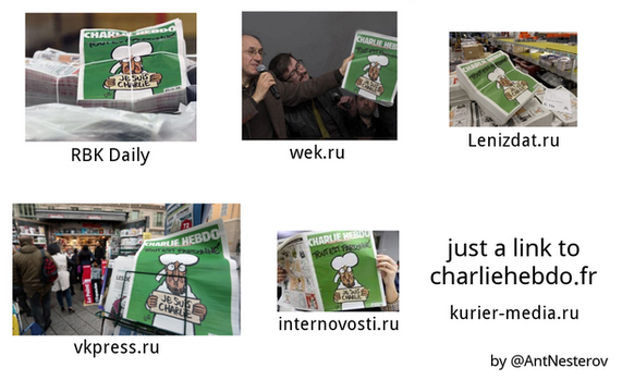 Между тем, представители Роскомнадзора объяснили такую жесткую позицию своей уверенностью в том, что публикуя даже не сами карикатуры, а просто стопки журнала, СМИ тем самым разжигают религиозную вражду: