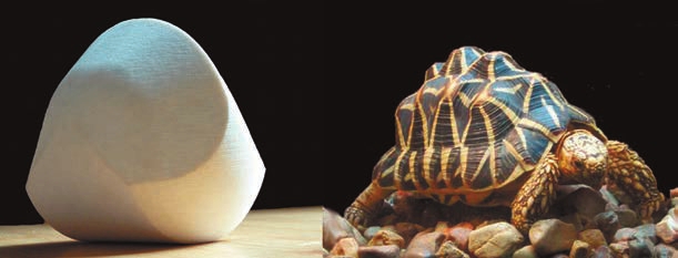 В 2008 году Домокош и Варконьи опубликовали еще одну статью [4] — о форме черепах. Что произойдет с черепахой, если она случайно перевернется на спину? Как ей вернуться в нормальное положение? Оказалось, что среди 200 существующих на Земле видов черепах есть длиннолапые (они пользуются лапами, чтобы перевернуться со спины на брюшко) и коротколапые (вернуться в исходное положение им помогает форма панциря, близкая к форме гёмбёца). Слова Гегеля «Всё, что разумно, действительно, и всё, что действительно, разумно» в очередной раз находят подтверждение благодаря красивой связи между придуманным объектом и формой, получившейся в процессе эволюции.