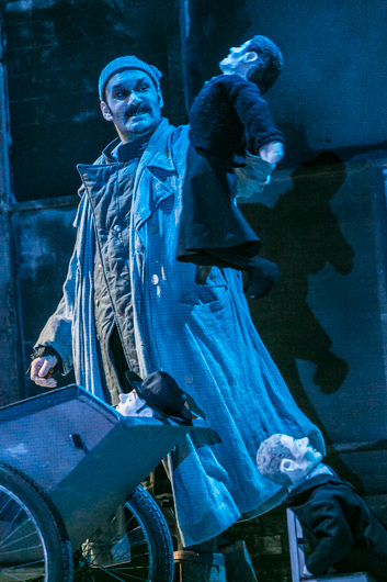 © Jochen Quast Музыкальная стихия Лубченко — звуковые обои. Словно basso continuo, партитуру пронизывает моторно пульсирующий паттерн, структурированный при помощи синкопированных акцентов у духовых и ударных, как будто отзвуки уходящего поезда времени — этакий смазанный симфоническим жиром ответ Филипу Глассу. Номера для солистов и хора — а-ля Прокофьев, Чайковский, Стравинский или же в стиле духовных песнопений и народных песен, а склонный к садизму комиссар даже поет фугу в духе Баха. Главное — все громко, агрессивно, бесстрашно пафосно. В сочетании с заявленным трагизмом материала этот эмоционально-высокопретенциозный и продолжительный музыкальный неймдроппинг способен поставить на колени любую публику.
