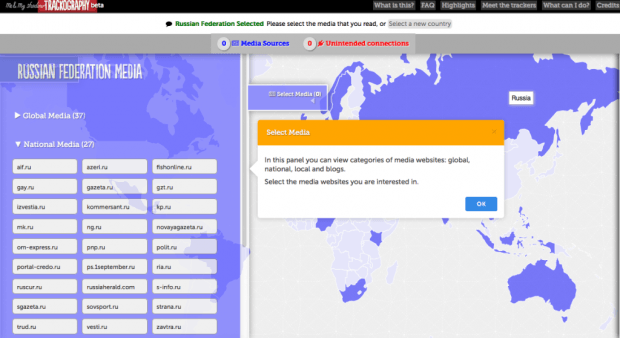 Trackography иллюстрирует, какие компании отслеживают наши данные, когда мы читаем новости в Интернете, а также в какие страны эти данные попадают каждый раз, как мы заходим на веб-ресурс. Цель Trackography – повышение осведомленности и прозрачности информации о сборе данных пользователей.