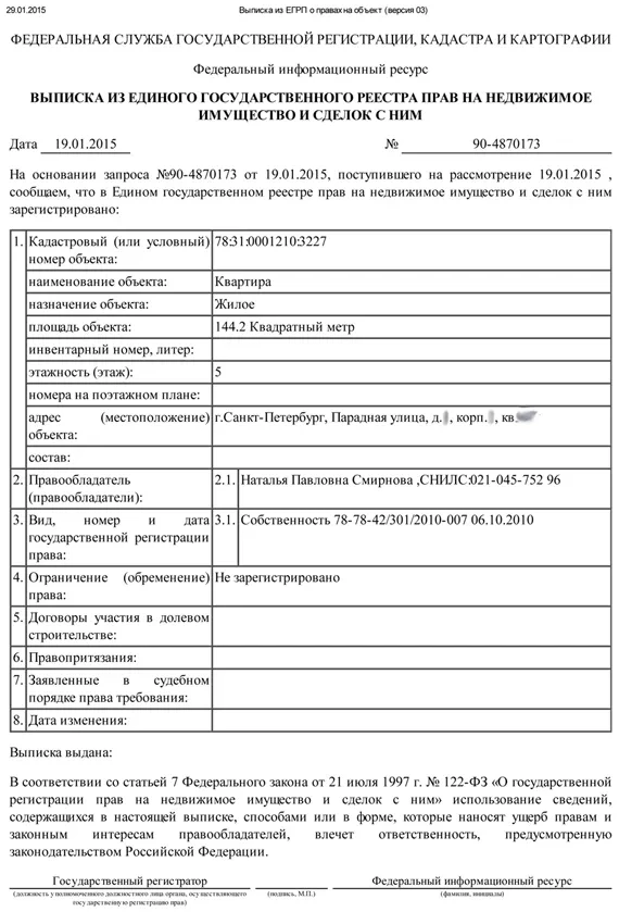 Дело в том, что и в первой выписке из ЕГРП (там, где вместо имени — числа), и во второй — указан страховой номер индивидуального лицевого счета (СНИЛС) владельца недвижимости. И в обоих случаях СНИЛС совпадает.