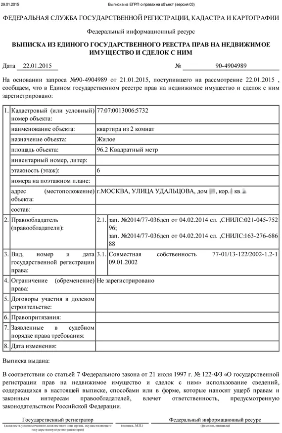 С этой квартирой связан любопытный факт. Дело в том, что в выписке из ЕГРП не указаны фамилии правообладателей, а лишь номера с аббревиатурой «дсп» — для служебного пользования.