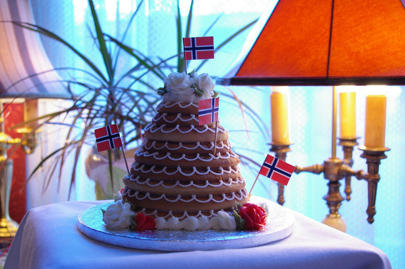 В Норвегии существует свой особый вариант многоуровневого свадебного торта. Кранскейк - это "башня" из замороженных миндальных колец.