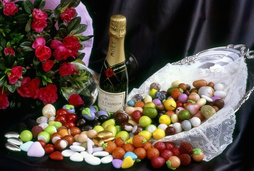 "Конфетти" на итальянском - это не обрывки бумаги, а сладкие украшение, особенно драже, которые получают все гости свадьбы. Раньше ими забрасывали жениха и невесту, но теперь конфетки для этой цели заменили на маленькие цветные кусочки бумаги.