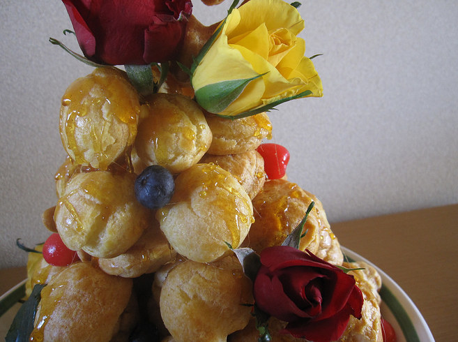 Французский свадебный торт - это восхитительная "башня" из шариков с кремом и сладкими соусами, украшенный фруктами, орехами и глазурью.