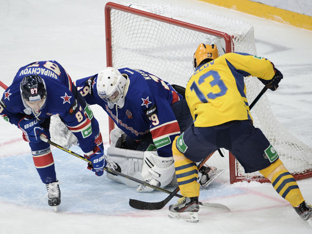 Хоккеисты санкт-петербургского СКА потерпели поражение от подмосковного "Атланта" в домашнем матче регулярного чемпионата КХЛ.