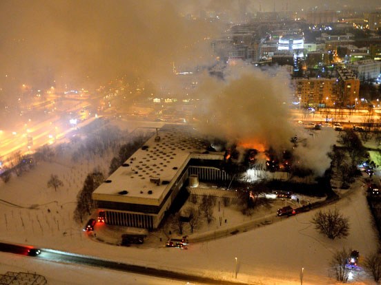 Пожар в Институте научной информации по общественным наукам Поздно вечером в пятницу, 30 января, на Нахимовском проспекте в Москве загорелось здание Института научной информации по общественным наукам. Пожару был присвоен третий уровень сложности. Только к утру следующего дня возгорание было локализовано, а на его ликвидацию ушло более 26 часов, и были брошены силы не менее 60 пожарных расчетов. Из-за огня обрушилась одна из стен здания, часть кровли обвалилась, а площадь пожара достигла двух тысяч квадратных метров. Пострадавших нет.