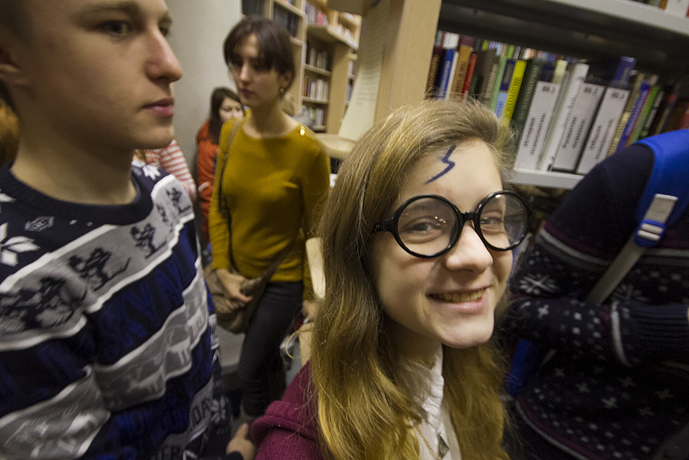 Издательство Bloomsbury, выпустившее семь книг Джоан Роулинг, ежегодно проводит «Ночь Гарри Поттера» по всему миру. 5 февраля костюмированный праздник впервые прошел в Петербурге — местные любители книг о юном волшебнике собрались в 3-й районной библиотеке на Петроградской стороне. На камерном празднике для фанатов организовали магические квесты, конкурсы и мастер-классы, разливали тыквенный сок и пугали игрушечными ведьмами. Подростки с нарисованными шрамами а-ля Поттер, уроки зельеварения между книжными полками и волшебные палочки из фольги — как прошла скромная «Ночь Гарри Поттера» в районной библиотеке — в фоторепортаже «Бумаги».