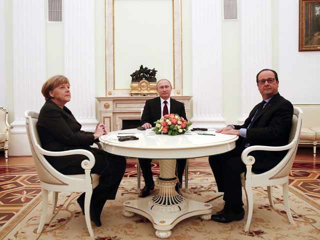 В общей сложности переговоры в Москве с участием Путина, канцлера Германии Ангелы Меркель и президента Франции Франсуа Олланда продлились свыше пяти часов. Освещать мероприятие прибыли около сотни журналистов, но все беседы велись за закрытыми дверями. Как указывает ТАСС, по итогам встречи Песков ровно две минуты выступал перед представителями СМИ с докладом, но отвечать на какие-либо вопросы он отказался. Меркель и Олланд сразу отправились в аэропорт. Все стороны назвали переговоры "конструктивными" и "содержательными".