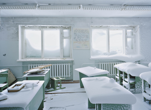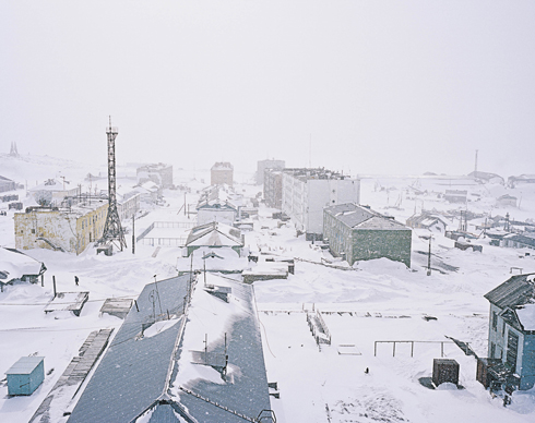 Что в этих широтах делают люди (средняя температура зимой — –30° C, летом — +9° C), которым то и дело приходится отбиваться от разгуливающих по улицам белых медведей? Этот недоуменный вопрос двое швейцарцев, проникших на практически недоступную для иностранцев территорию, то и дело задавали местным жителям, 93 % которых работают на государство. Вот, например, что ответила Урсу Маннхарту на этот вопрос глава поселка Ирина Дудина. «Меня часто спрашивают: «Как тебя вообще занесло в эти широты?» — говорит Ирина, сидя в своем кабинете, где со стены ей помогают руководить красиво оформленные портреты президента Путина и премьера Медведева. — На что я отвечаю: «Я помогаю защищать границы нашей родины». И смотрит в окно, словно указывая на эти границы. Но там только снег, лед и несколько неказистых панельных зданий».