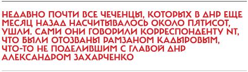 Недавно почти все чеченцы, которых в ДНР еще месяц назад насчитывалось около пятисот, ушли. Сами они говорили корреспонденту NT, что были отозваны Рамзаном Кадыровым, что-то не поделившим с главой ДНР Александром Захарченко. При этом представители новой власти объясняют эту ситуацию нежеланием «гордых джигитов» идти в подчинение местным командирам. А рядовые ополченцы сквозь зубы говорят, что горцы не уважают никого, кроме своих соплеменников и постоянно попадаются на разных неблаговидных делах.