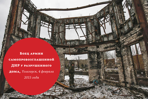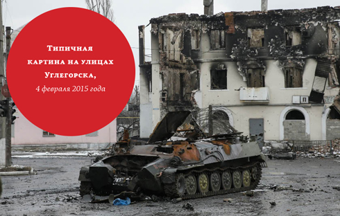 В последних числах января здесь шли кровавые бои. Силы самопровозглашенных ДНР и ЛНР пытались закрыть в «котел» около 8 тыс. украинских военных, находящихся в соседнем Дебальцево, расположенном на границе Луганской и Донецкой областей Украины. В окрестных населенных пунктах в течение недели хоронили погибших из местных жителей, ушедших добровольцами в ополчение. 29 января первая колонна разведки сепаратистов попала под шквальный огонь крупнокалиберных пулеметов, противотанковых систем и стрелкового оружия ВСУ (Вооруженные силы Украины) и Нацгвардии. На подступах к городским окраинам жуткой зарисовкой на тему апофеоза войны застыли сгоревшие боевые машины с разорванными корпусами и вывороченными металлическими внутренностями. Интуитивно угадываешь в темных пятнах, расплывшихся по броне, очертания сгоревших тел. В десятках метрах от них смотрит в небо пушка отброшенной страшным разрывом башни БМП. Танк, пошедший в лобовую атаку на укрепрайон обороняющихся, завалился в глубокий окоп, но успел последним выстрелом развалить блиндаж врага. Механика-водителя танка, как рассказывают представители армии ДНР, вытащили и задушили солдаты противника.