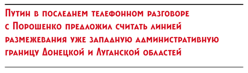 Наступления на Славянск и Краматорск не получилось, но на переговорах контактной группы в Минске версия о намерении Путина идти дальше, на Запад, коли Киев проявляет несговорчивость, неожиданно находит подтверждение. «Переговоры начались примерно в 4 часа дня, — пересказывает подробности диалога в Минске дипломатический источник NT. — Когда встал вопрос о том, что считать впредь реальной линией размежевания сторон представители ДНР и ЛНР дали понять, что «их устроит внешняя линия границы». Что означает — административная граница Донецкой и Луганской областей как таковая.