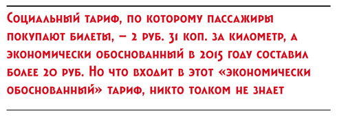 Впрочем, решение было вынужденным. «Социальный тариф, по которому пассажиры покупают билеты, — 2 руб. 31 коп. за километр, а экономически обоснованный в 2015 году составил более 20 руб.», — объясняет Клюхин. Но что входит в этот «экономически обоснованный» тариф, он толком не знает. По словам Клюхина, в Псковской области небольшой пассажирский поток, а пригородные поезда, в основном дизельные, обходятся дороже, чем электрические. «Но принять такую сумму, которую просит перевозчик, мы никак не можем. По данным транспортных компаний, стоимость одного пассажиро-километра на автобусе составляет 4 руб., то есть в 5 раз меньше», — подчеркивает чиновник. Получается, что дешевле закупить автобусы, чем платить по тарифу «Северо-Западной ППК».