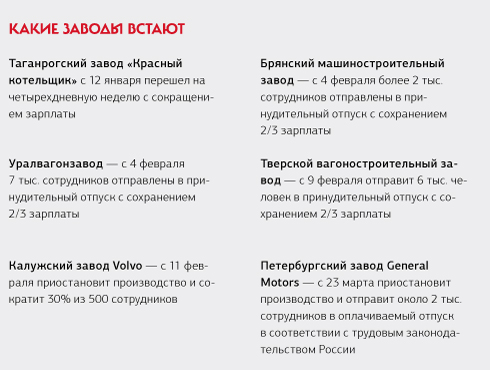 Спасители 10 тысяч семей в одночасье лишаются источника дохода, а собственник завода «Трансмашхолдинг» ждет, когда у заказчика электровозов — РЖД, — появятся средства. «Есть понимание, сколько локомотивов закажет РЖД, но все это пока не законтрактировано — денег нет», — пояснил NT руководитель департамента внешних связей «Трансмашхолдинга» Артем Леденев. При этом, даже если заказчик оплатит полностью контракт на изготовление 330 секций электровозов, о котором так уверенно еще в январе говорил директор завода Щедров, к концу года на заводе все равно планируется сокращение около 2 тыс. человек. По сведениям газеты РБК, РЖД планирует подтвердить свои контракты с поставщиками с 1 апреля. 3 февраля на совещании у Путина в Ново-Огареве было заявлено, что РЖД получит от ВТБ 100 млрд руб. на покупку локомотивов и на инвестиции в инфраструктуру. Вопрос — когда и в каком объеме эти деньги дойдут до новочеркасского завода.
