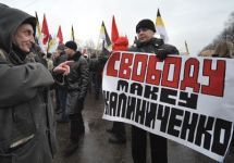 В Петербурге прошли акции протеста против задержания Калиниченко, сообщается на странице группы "Белые новости". На улицах города, в том числе у входа в Законодательное собрание, состоялось несколько одиночных пикетов. Около 20 человек собрались с растяжкой "Свободу Максиму Калиниченко!" в местном гайд-парке на Марсовом поле.